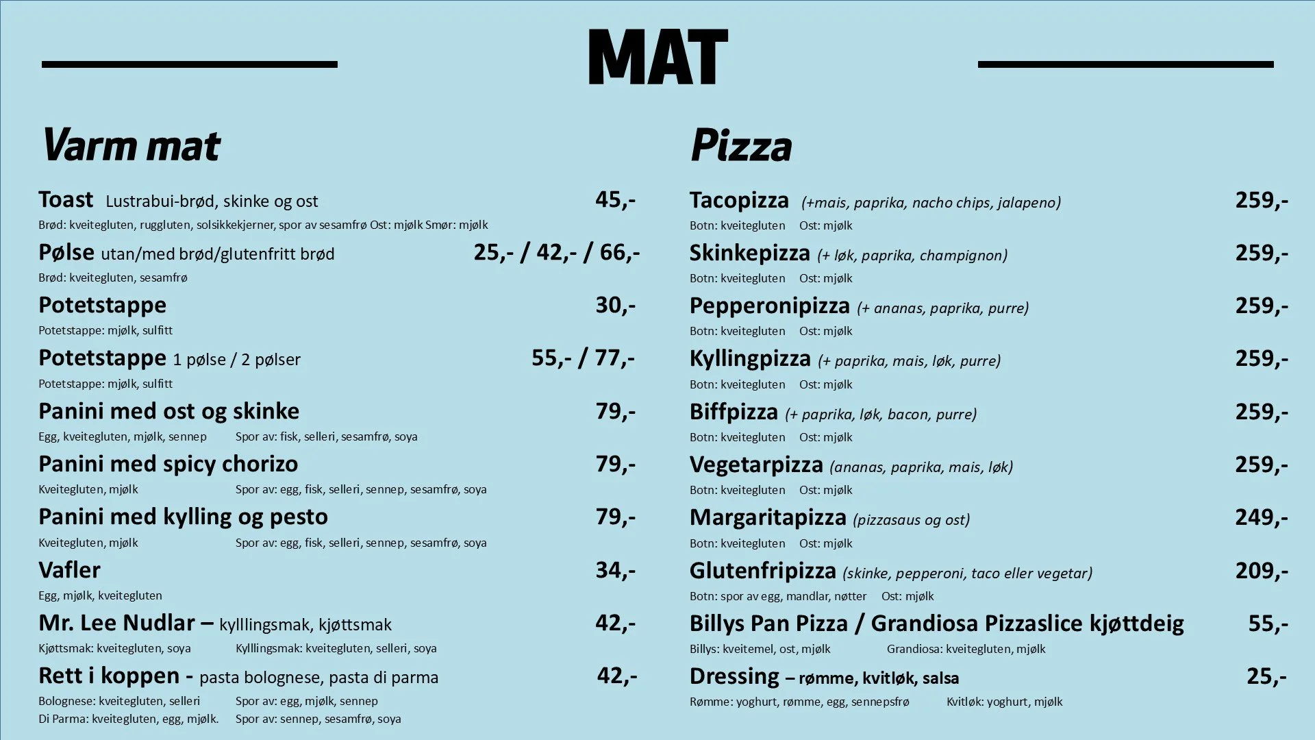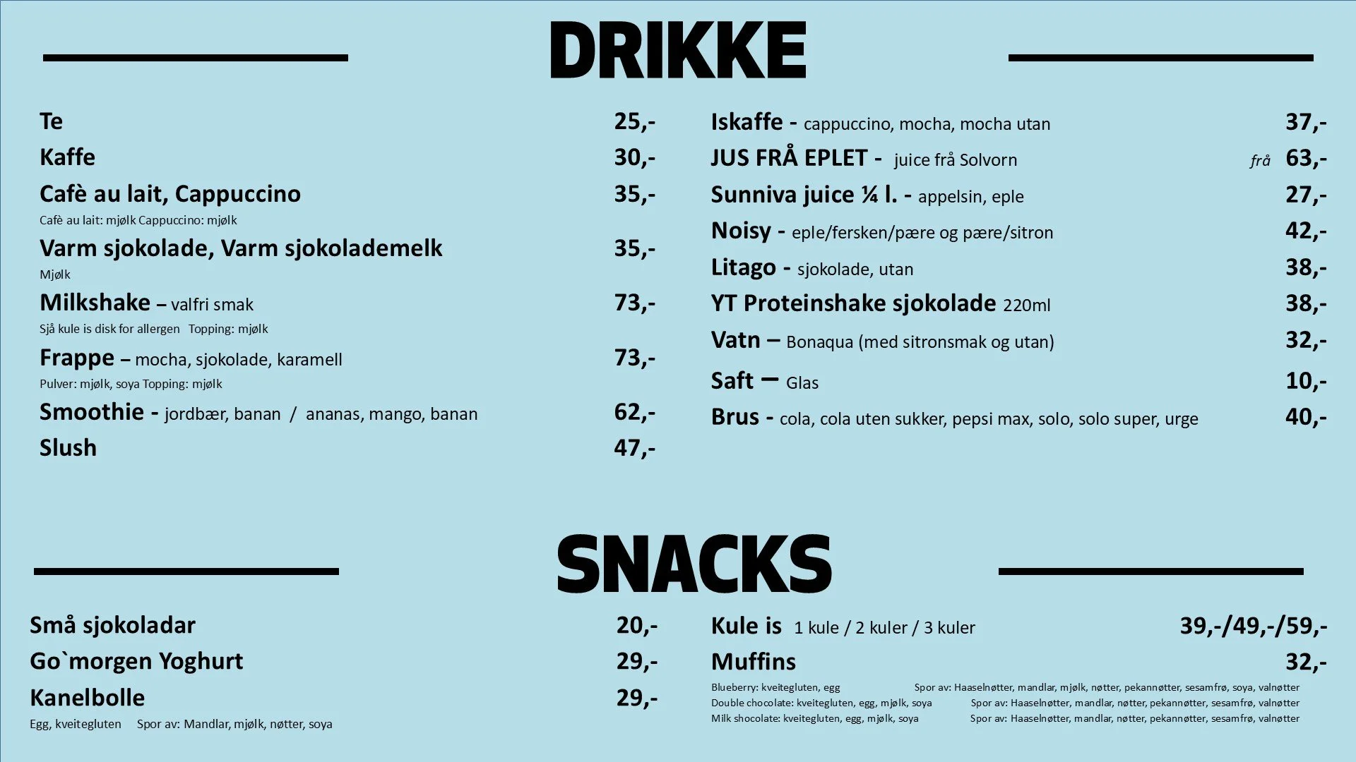 I kaféen vår har me eit godt utval av varm mat, pizza, drikke og snacks! Vis full størrelse Vis full størrelse Resepsjonen / kaféen vår Nyt mat, drikke, is, snacks i kaféen vår.
