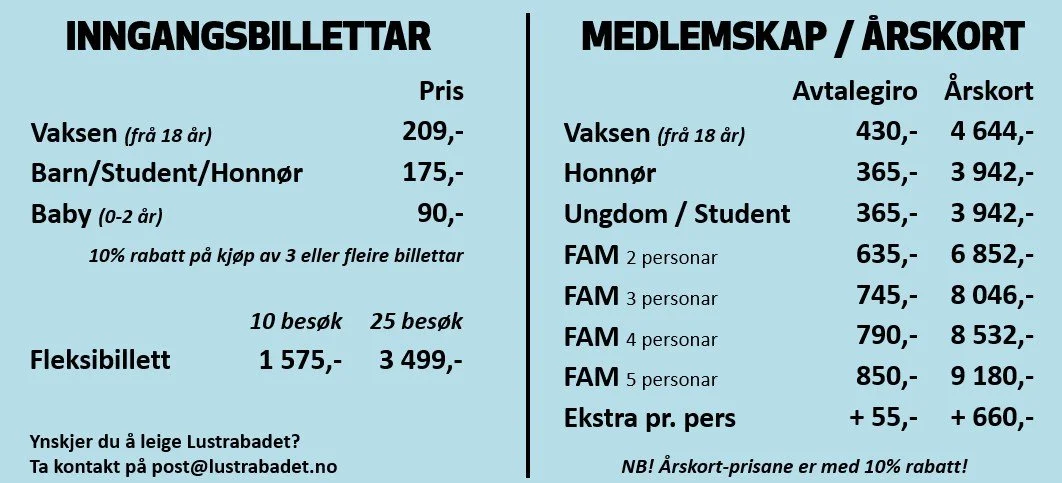 Born kan være på føresette sitt årskort ut det året dei fyller 18 år. Føresette er pliktige til å opplyse om born som er fylt 18 år. Babyar 0-1 år er gratis, men får likevel årskort for å blir registrert ved kvart besøk. Bindingstida på avtalegiro er min.12 mnd.